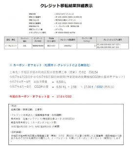 現場で使用している工事車両・建設機械から排出される ” CO2 ” を札幌市から購入した