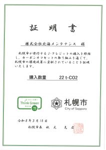 札幌市 J-クレジット 購入( 移転 ) | 株式会社 北海メンテナンス