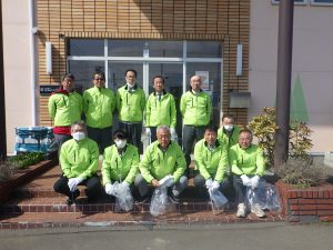※ 清掃活動開始前、会社前で記念撮影を行いました